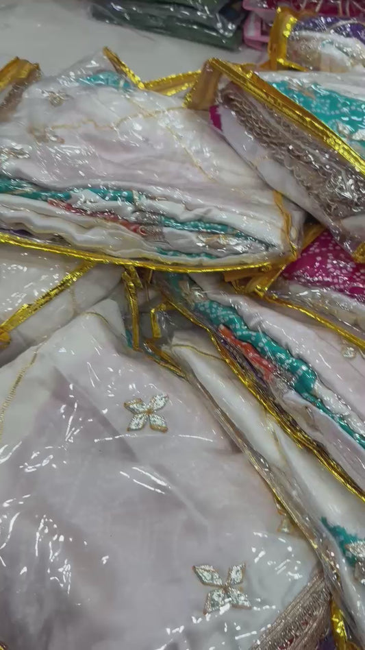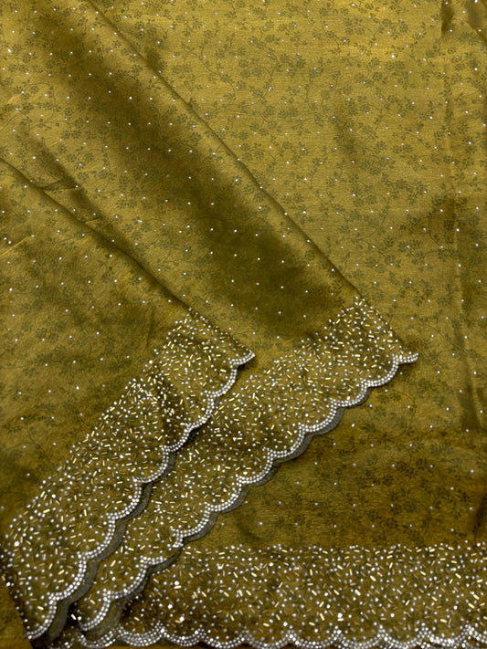 Pure Space Silk With Beautiful Original Gold Beeads Work with Cut work border