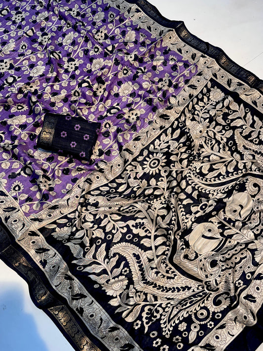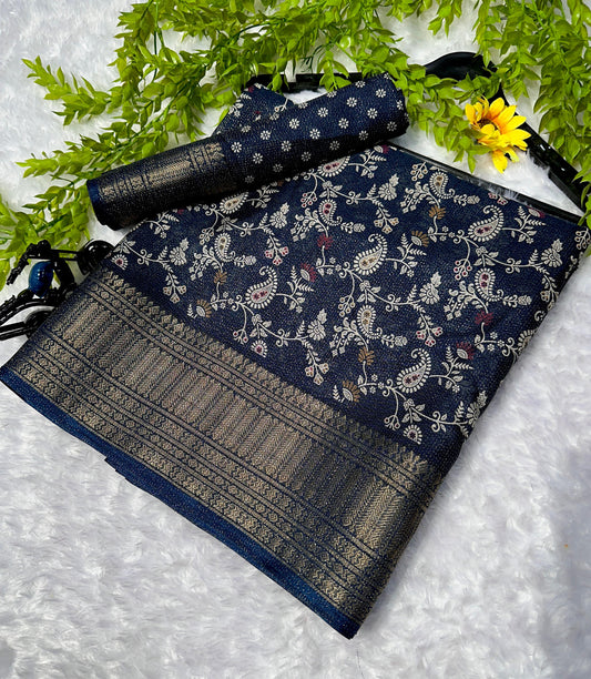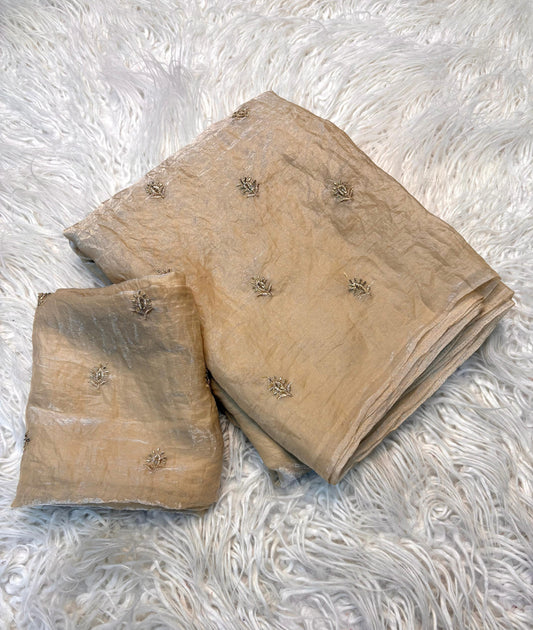 Pure Space Silk With Beautiful Original Gold Beeds Work with Cut work border*