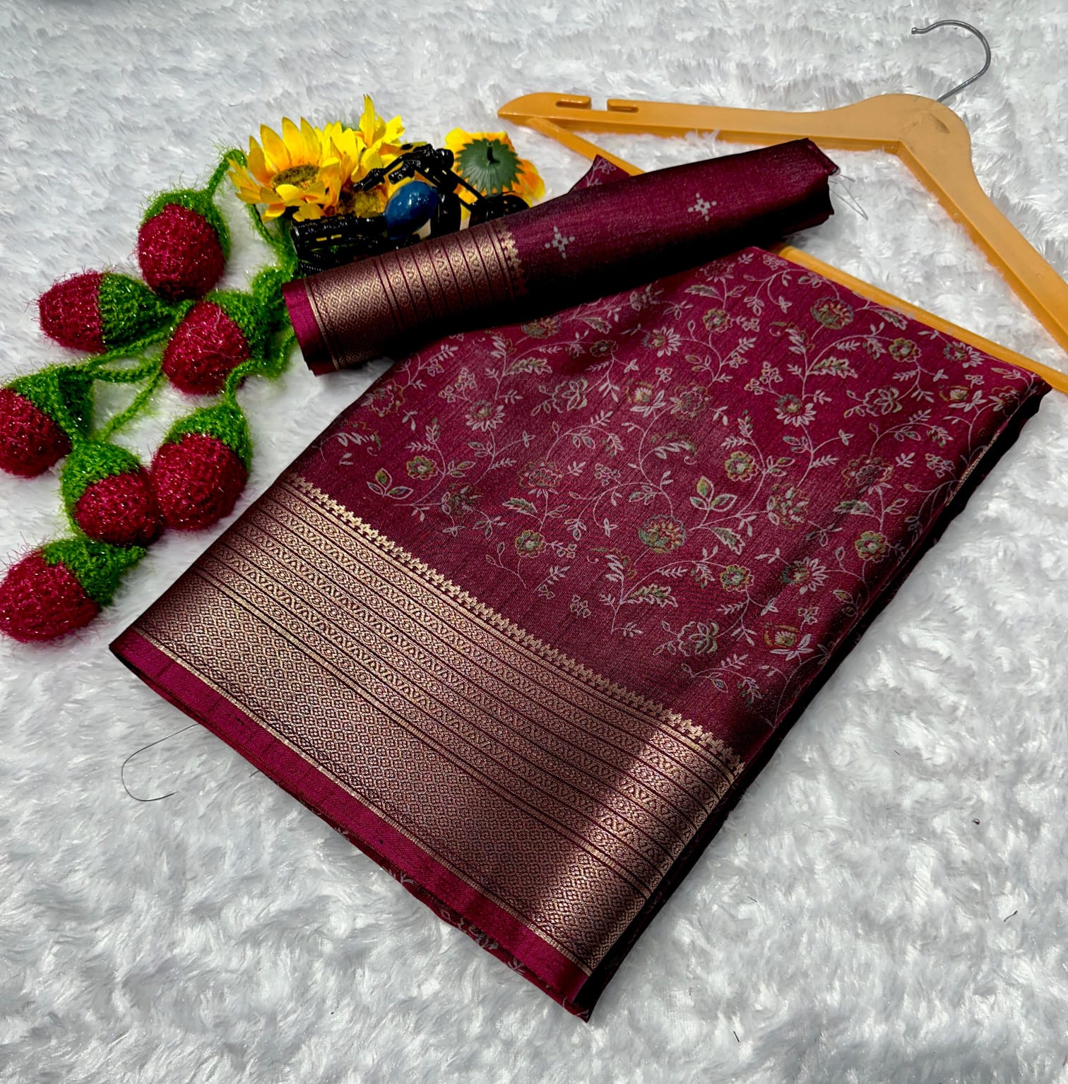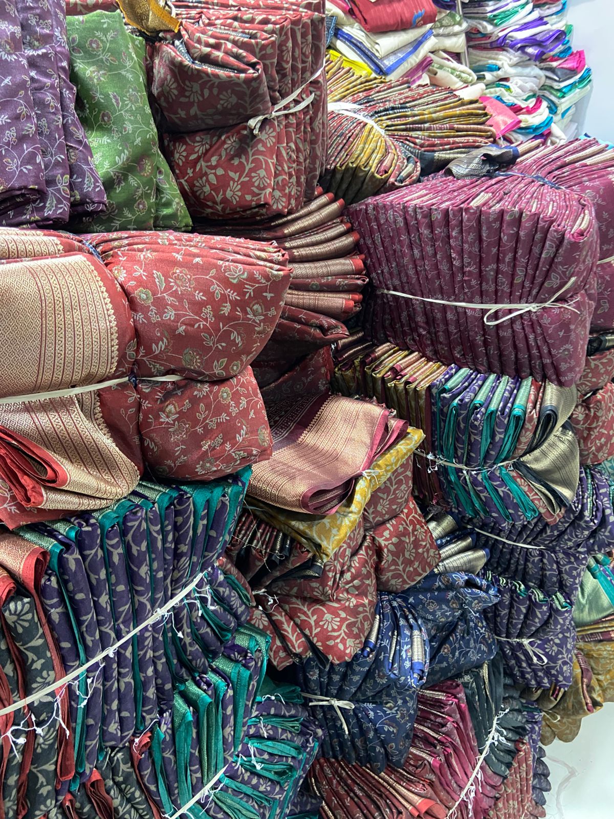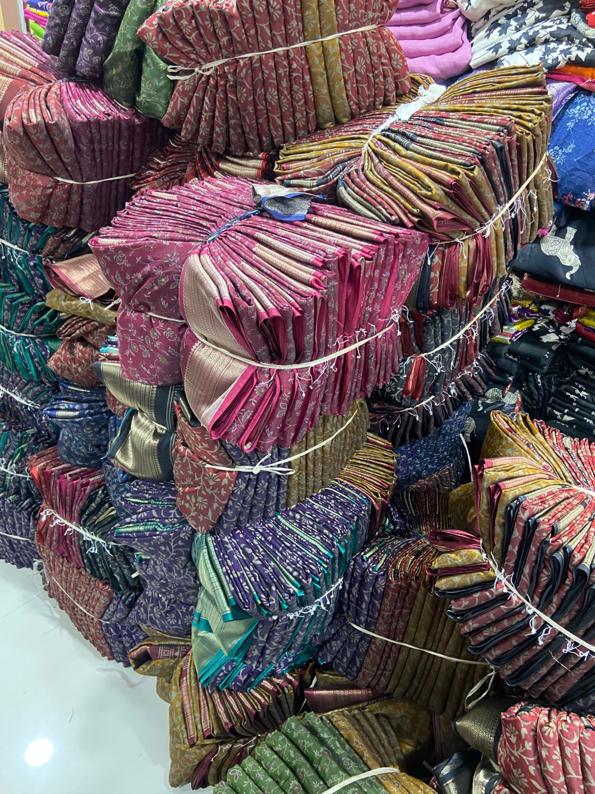 Pure Space Silk With Beautiful Original Gold Beeds Work with Cut work border*