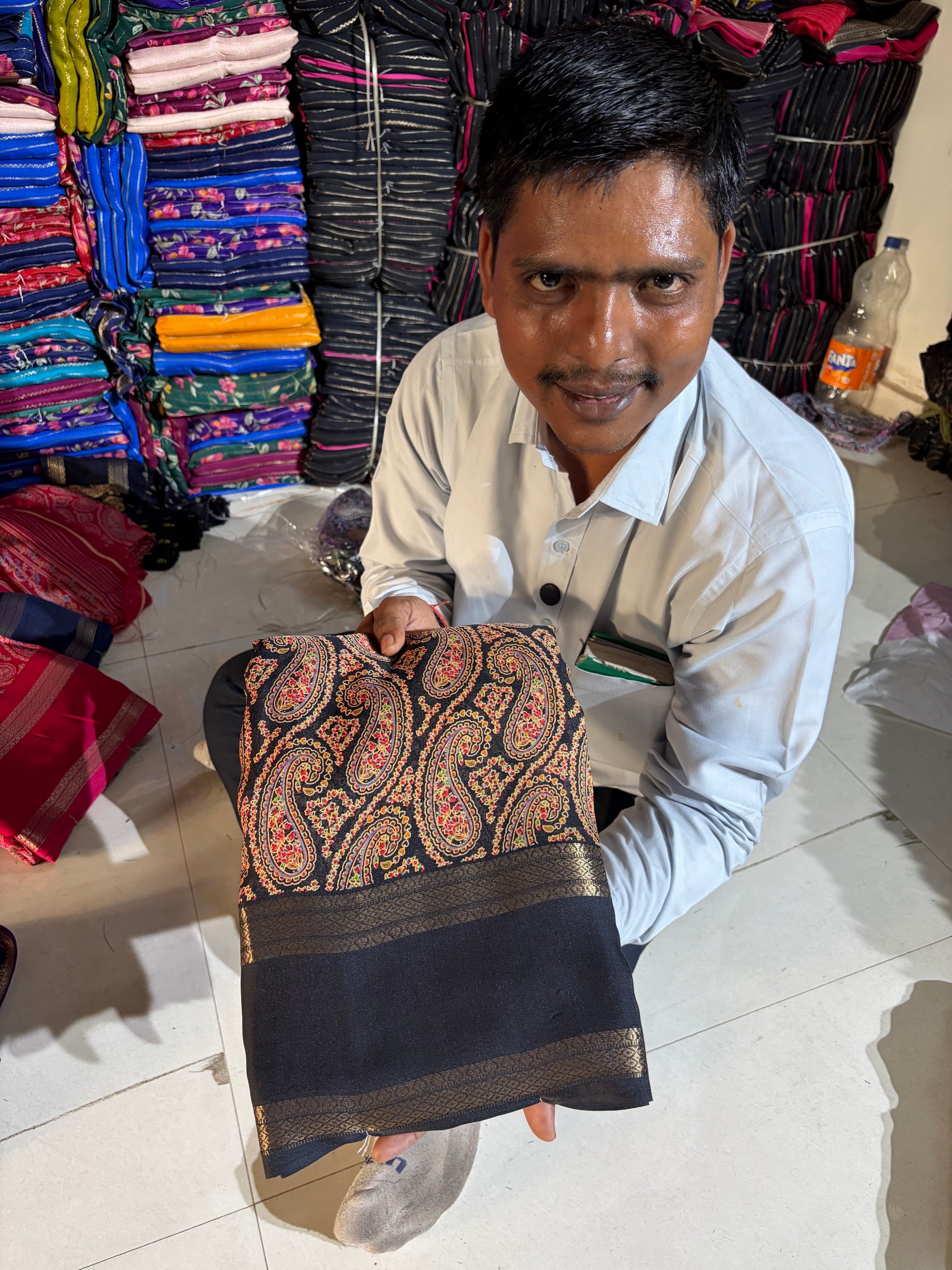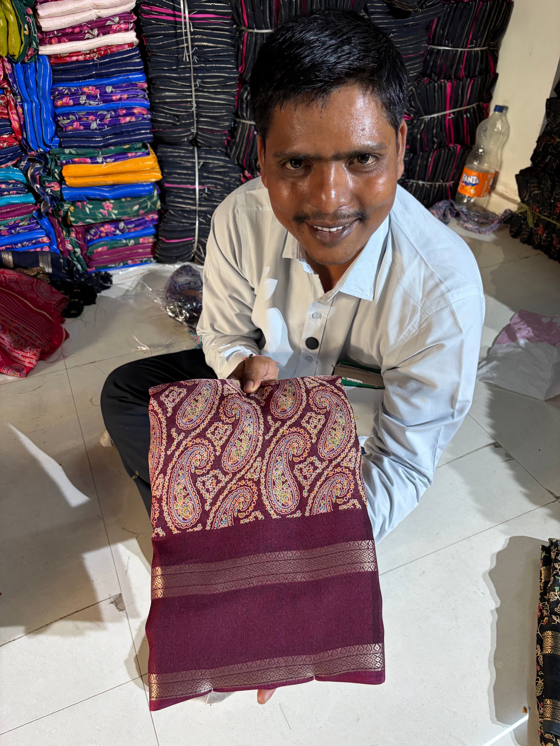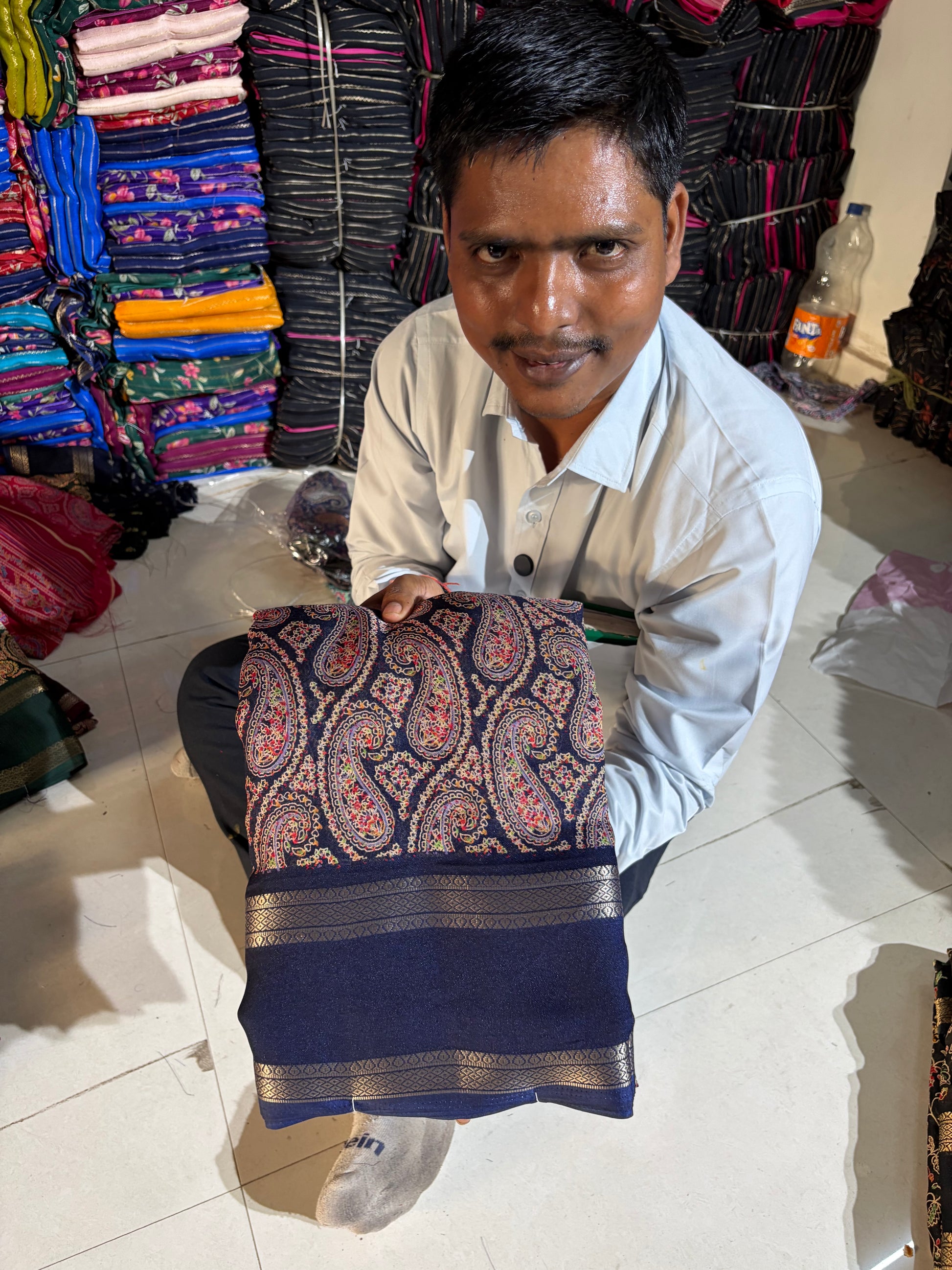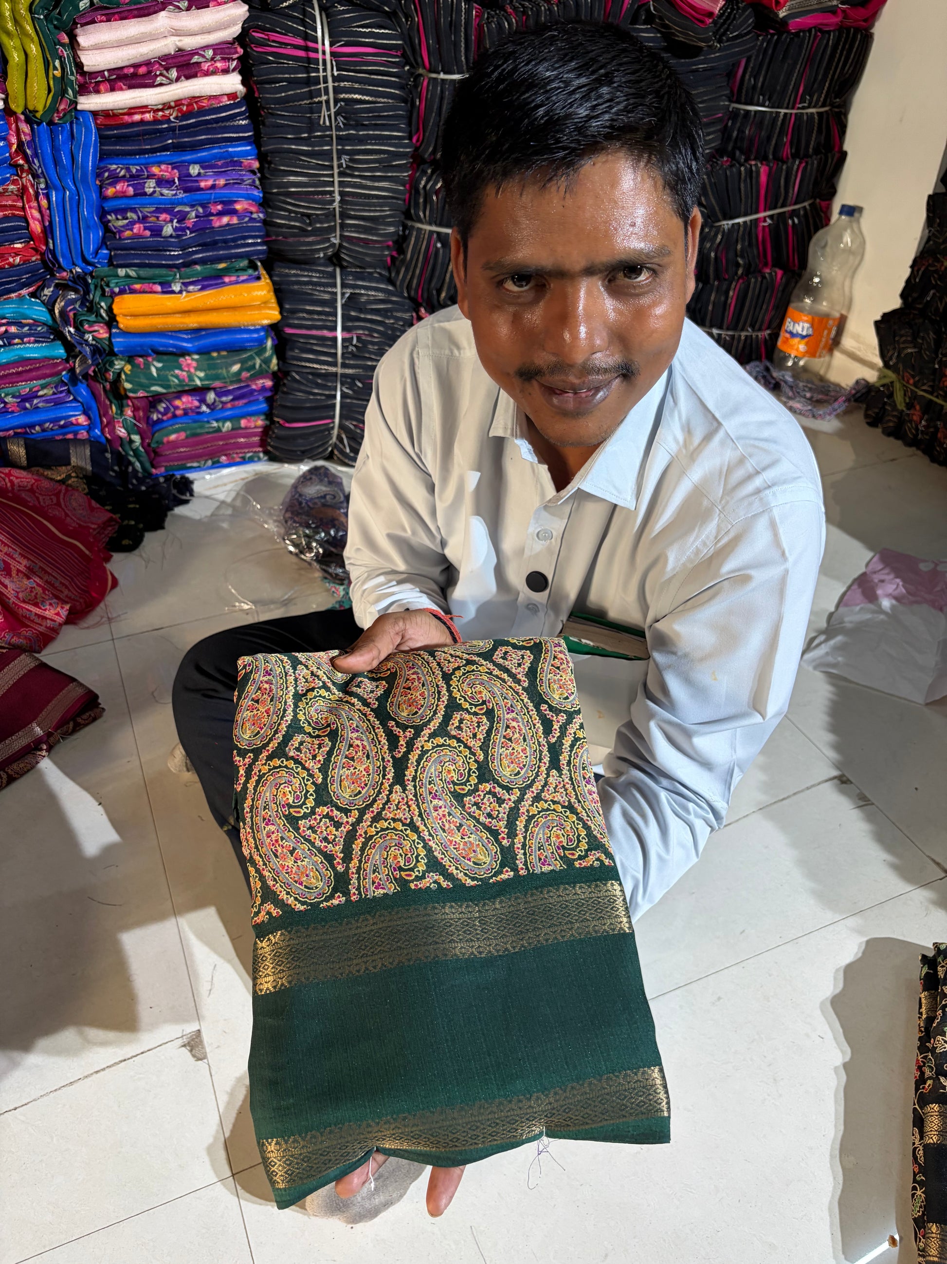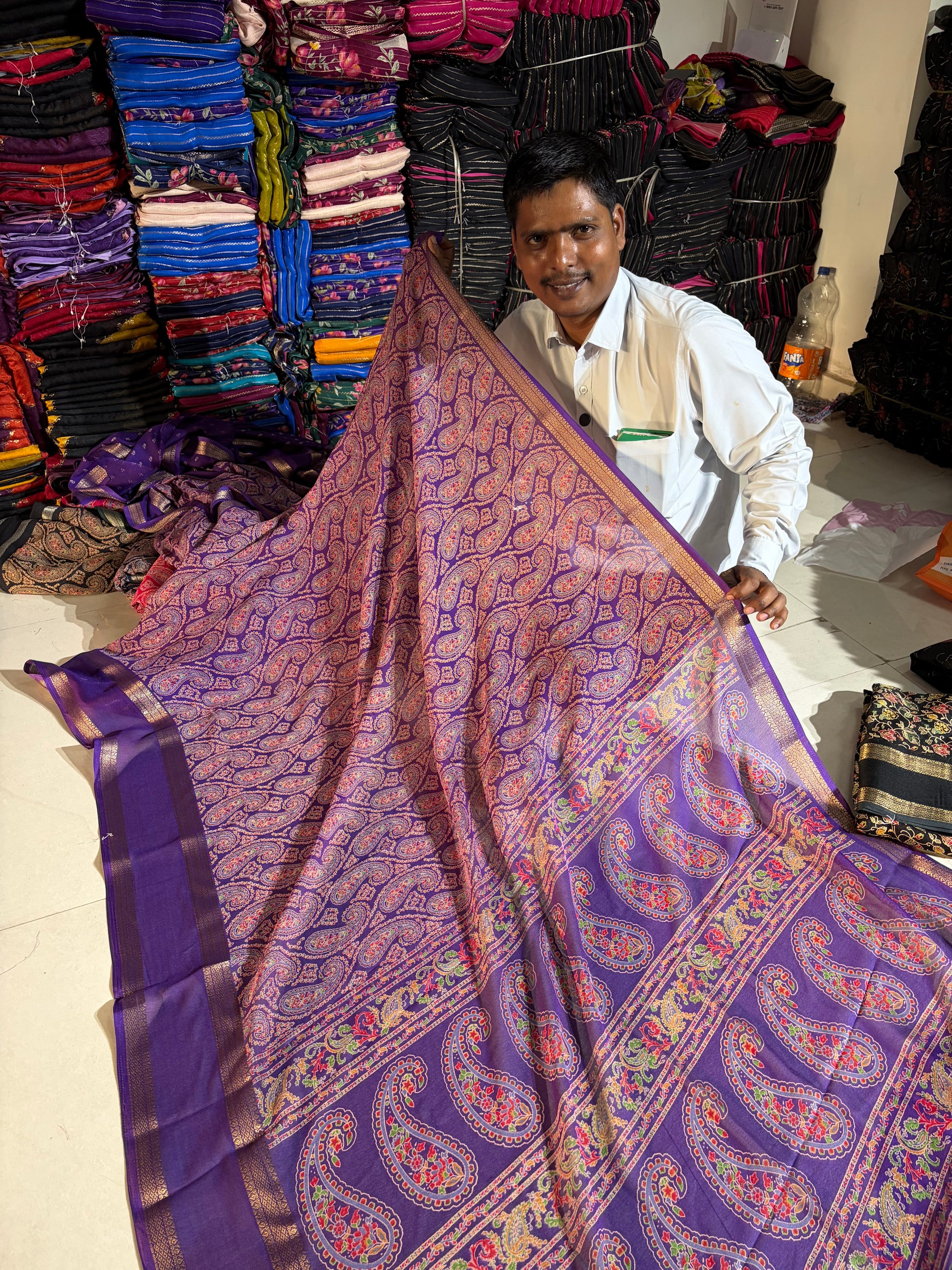 Soft Kashmiri cotton silk sarees with pen kalamkari design ( JP81)