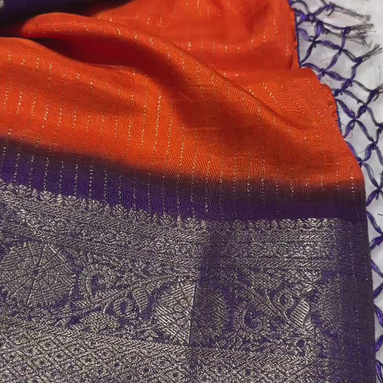 Pure Space Silk With Beautiful Original Gold Beeds Work with Cut work border*